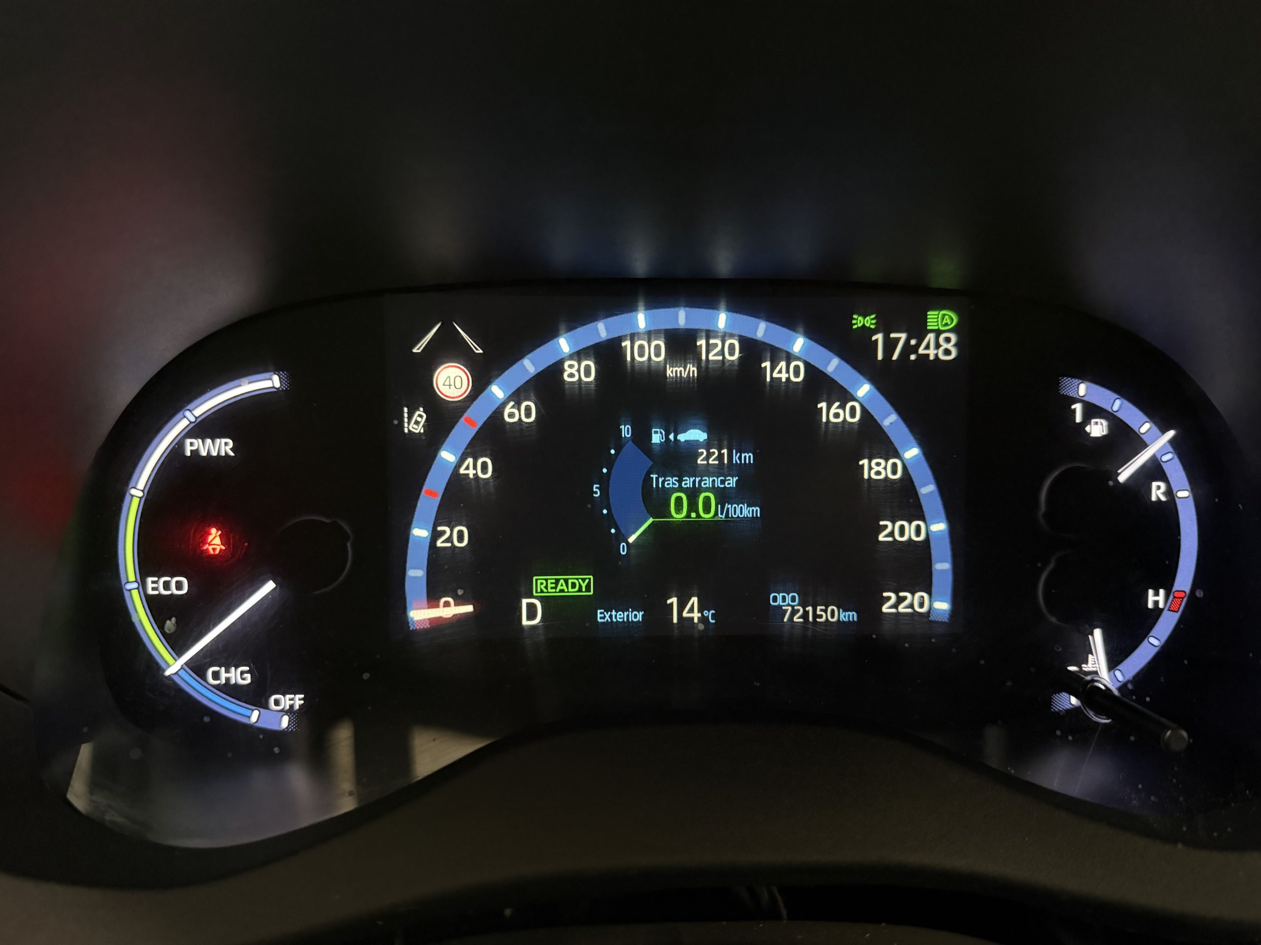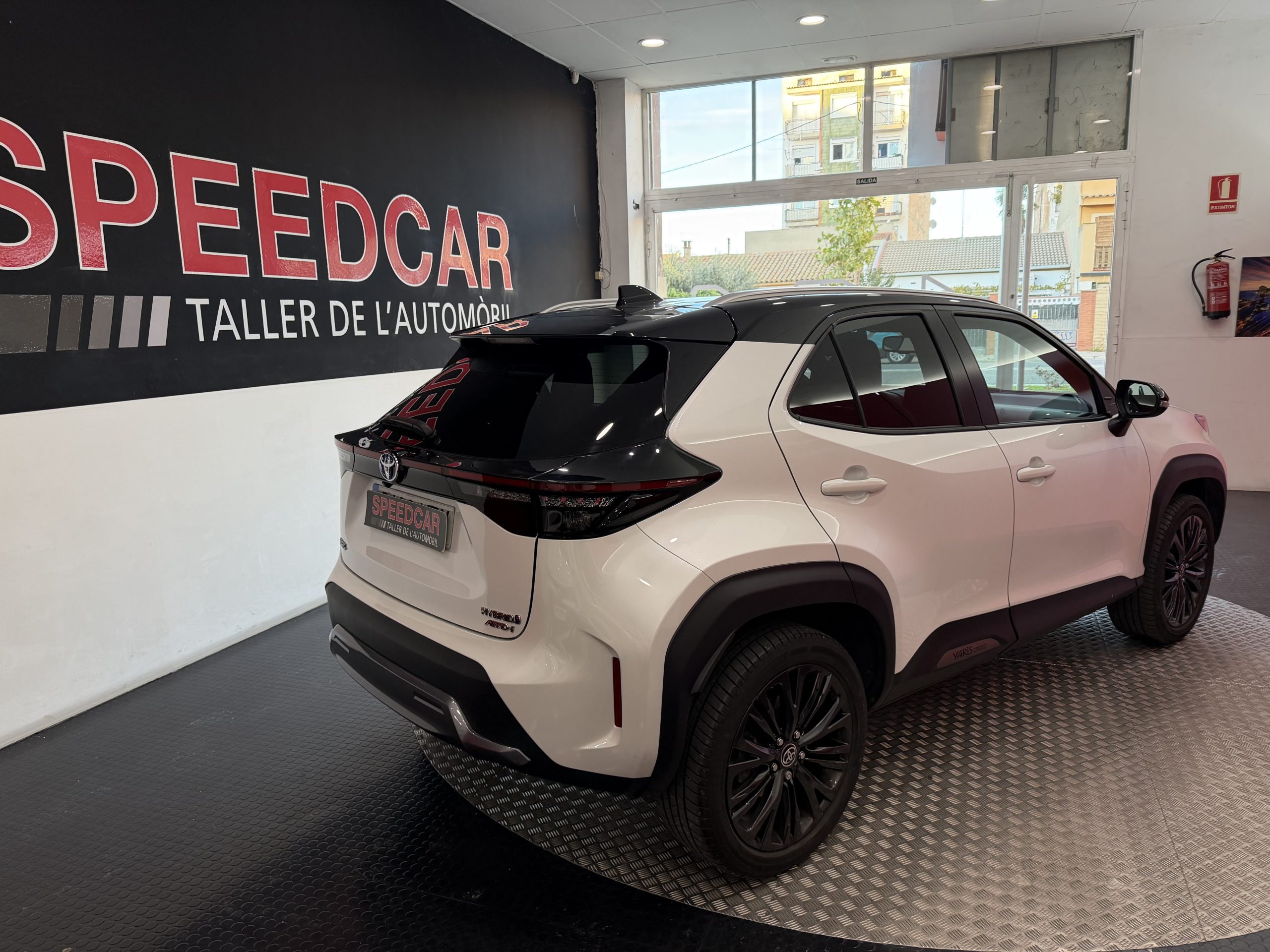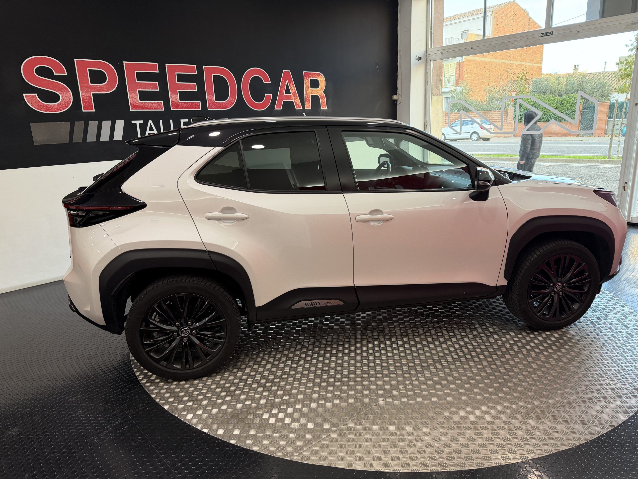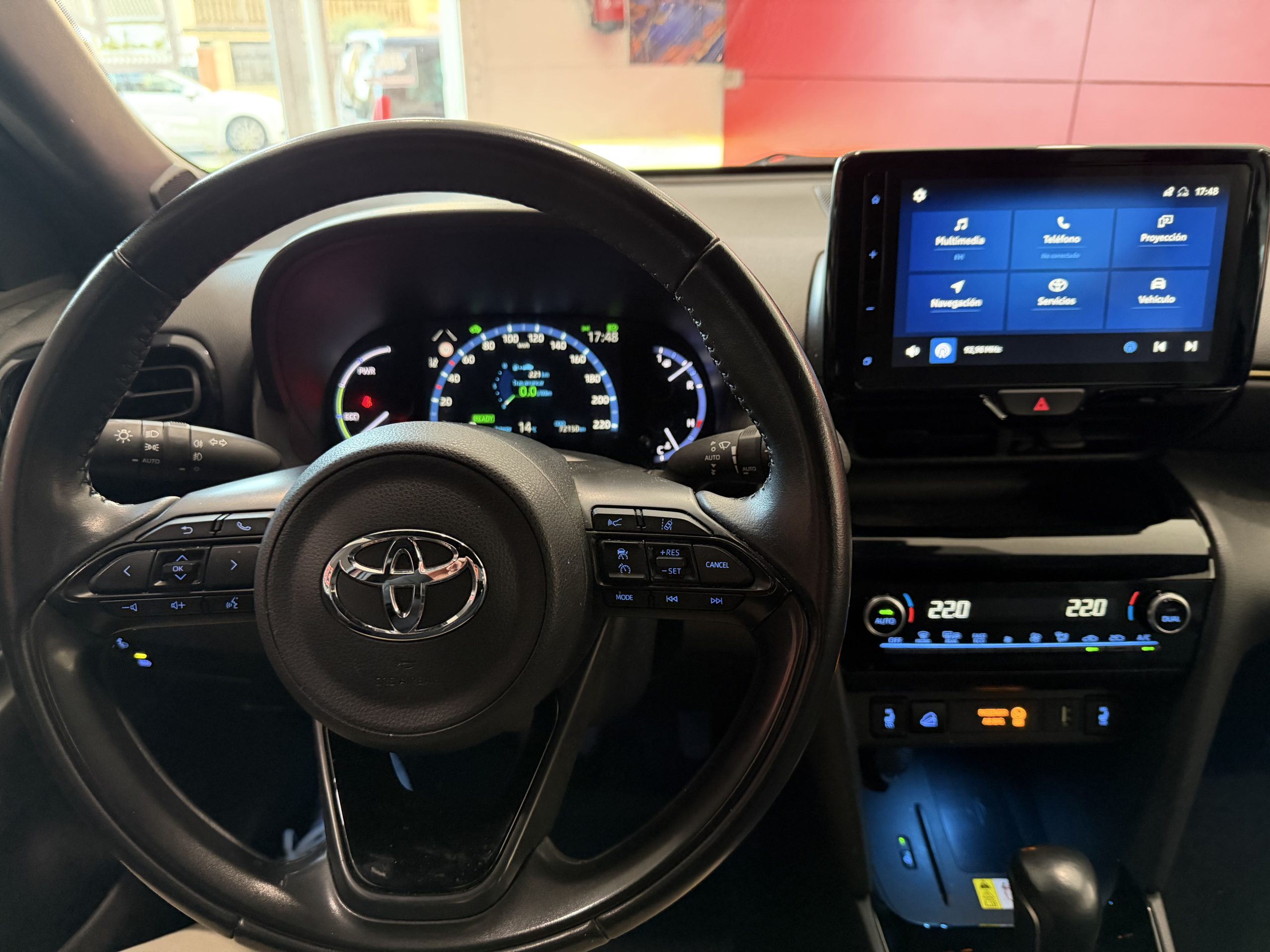 Este Toyota Yaris Cross 1.5 120H Adventure destaca por su tecnología híbrida que combina un motor eléctrico y gasolina, ofreciendo una conducción eficiente con etiqueta ECO que permite acceder sin restricciones a zonas de bajas emisiones en ciudades.